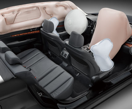除了用于保護(hù)前座乘員胸部和頭部的SRS側(cè)面安全氣囊,還有用于保護(hù)前后座乘員頭部的簾式安全氣囊。當(dāng)車(chē)身側(cè)面受到強(qiáng)烈碰撞時(shí),安全氣囊展開(kāi),覆蓋住幾乎全部的前后側(cè)門(mén)窗和中心柱。保護(hù)了乘員的安全,同時(shí)也降低了碰撞后被甩出車(chē)身的可能性。 |