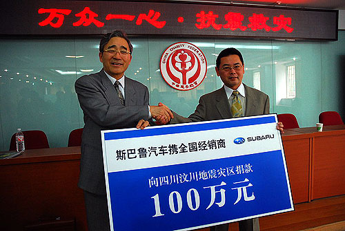 斯巴魯汽車(中國)有限公司攜旗下中冀斯巴魯(北京)汽車銷售有限公司、上海安吉斯巴魯汽車銷售服務(wù)有限公司、意美中國有限公司三大經(jīng)銷商及所有授權(quán)經(jīng)銷商在內(nèi)75家公司向本次四川地震受災(zāi)地區(qū)捐款100萬元人民幣,以支持災(zāi)區(qū)人民的搶險抗災(zāi)工作。