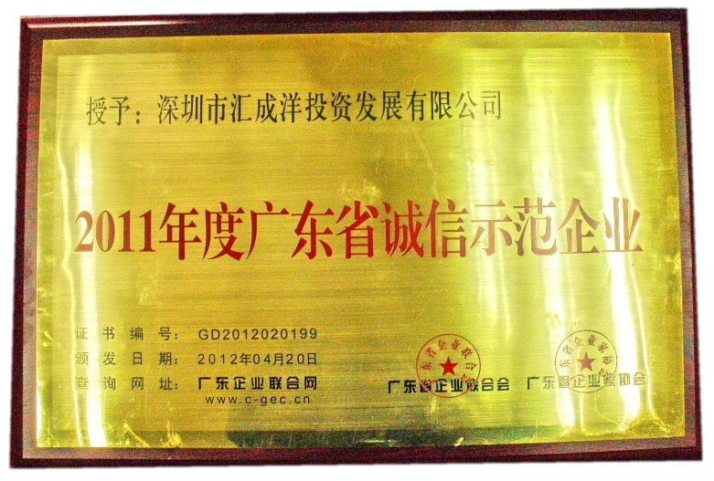 2011年度廣東省誠信示范企業(yè)