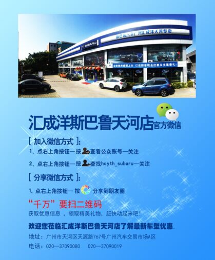 歡迎您蒞臨匯成洋斯巴魯天河店,了解最新車型優(yōu)惠。