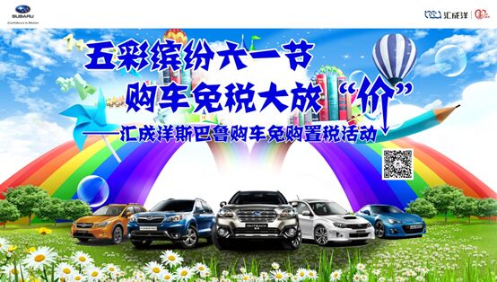 在六一兒童節(jié)到來之際我們還推出多項購車優(yōu)惠給廣大喜歡斯巴魯?shù)目蛻,完您一個購車夢想,現(xiàn)在購買指定車型+延保+按揭計劃就可以送汽車購置稅,真正的大放“價”!還等什么和孩子一起來到匯成洋斯巴魯購車吧!
