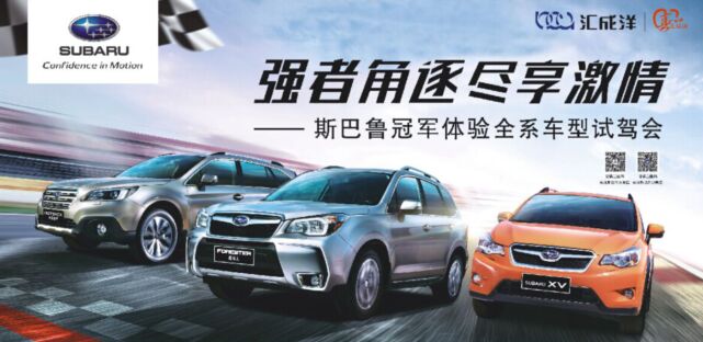 體驗(yàn)先進(jìn)汽車技術(shù)帶來的操控享受,體驗(yàn)賽道角逐的激動(dòng)心情,參與斯巴魯全系車型試駕會(huì)!