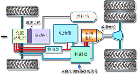以串聯(lián)混合動力電動汽車為例,介紹一下混合動力電動汽車的工作原理。