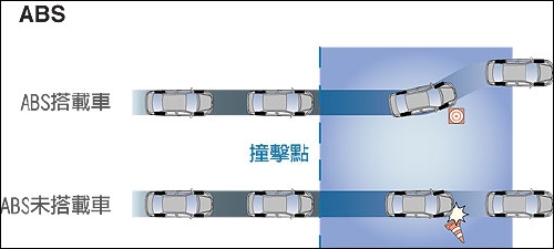在駕駛車輛時,遇上前方有事故或是障礙物的狀況是不可避免的。在駕駛?cè)巳μは聞x車踏板的情形,雖然能夠讓剎車力大幅度的提升,讓車輛有效的減速,但是剎車力過大的情形,便可能超過車輪與地面之間的抓地力,造成打滑失控的狀況。而在失控的狀況之下,車輛將依慣性方向前進,無法依駕駛對于方向盤的操作進行轉(zhuǎn)向,無法進行閃躲的動作。除非車輛滑動的磨擦力以及阻力足以在障礙前將車輛停下,否則車輛將因慣性作用而撞上障礙物。